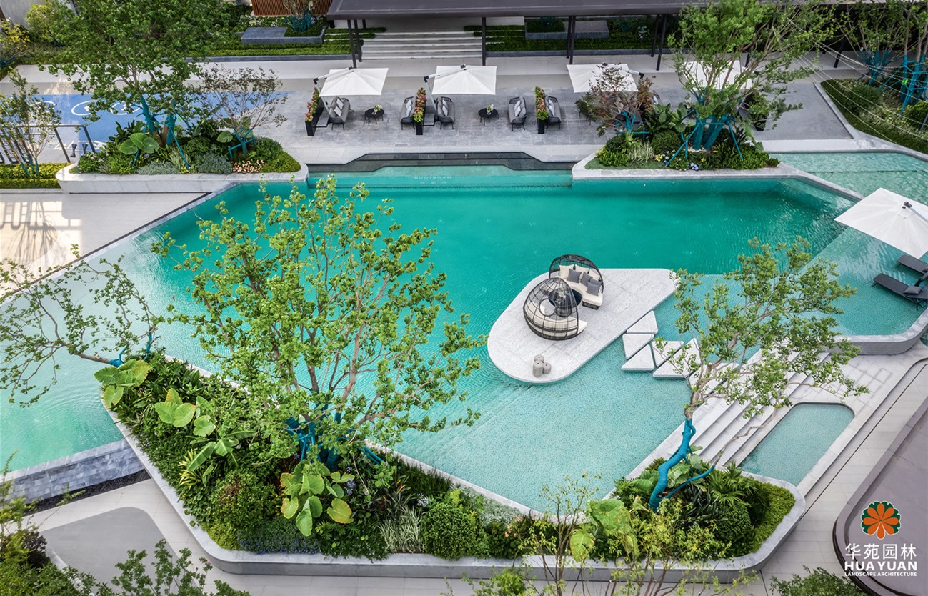 項目景觀以戶外泳池、水景為中心,構(gòu)筑多個功能空間,搭配姿態(tài)優(yōu)美的喬灌與品種豐富的花鏡,營造休閑度假的景觀氛圍。項目的景觀工程由華苑園林華東區(qū)域運營中心承建。