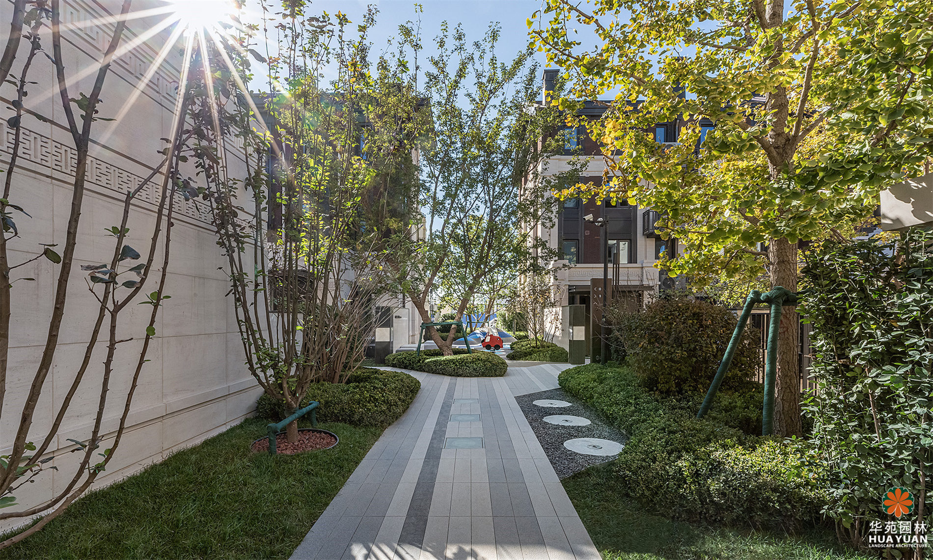 景觀采用簡潔大氣的線性鋪裝,搭配層次分明的綠化,融合現(xiàn)代科技與藝術(shù)裝飾,打造不同主題的休閑互動空間,形成“一廊四館”的空間布局,并運用優(yōu)質(zhì)材料及精湛工藝,打造富有質(zhì)感的大區(qū)景觀。