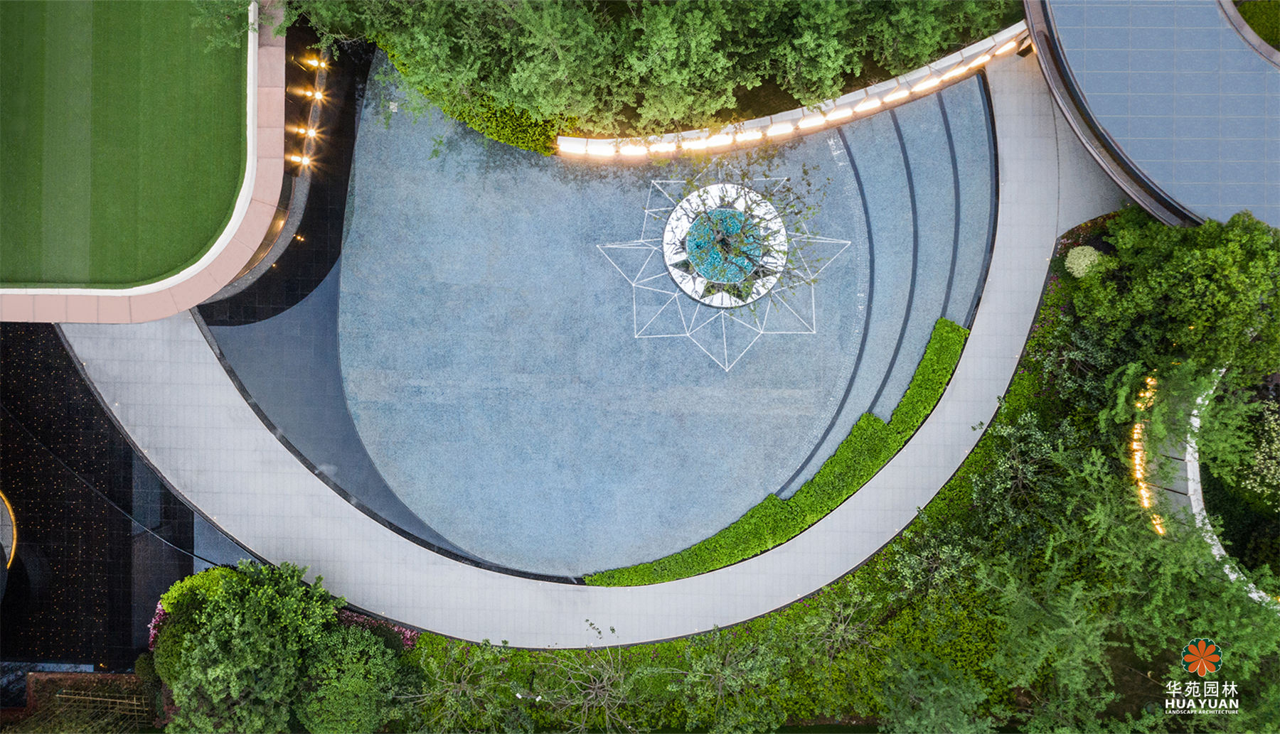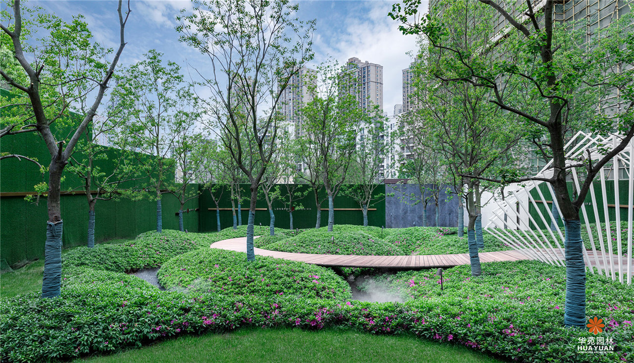 以簡約的景觀風(fēng)格,使用現(xiàn)代材質(zhì),表現(xiàn)景觀靈感——鉆石的特質(zhì);采用多變的弧形線條,打造四大主題區(qū),在繁華都市中營造寧靜、舒適,又不失格調(diào)的景觀空間。