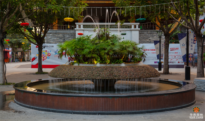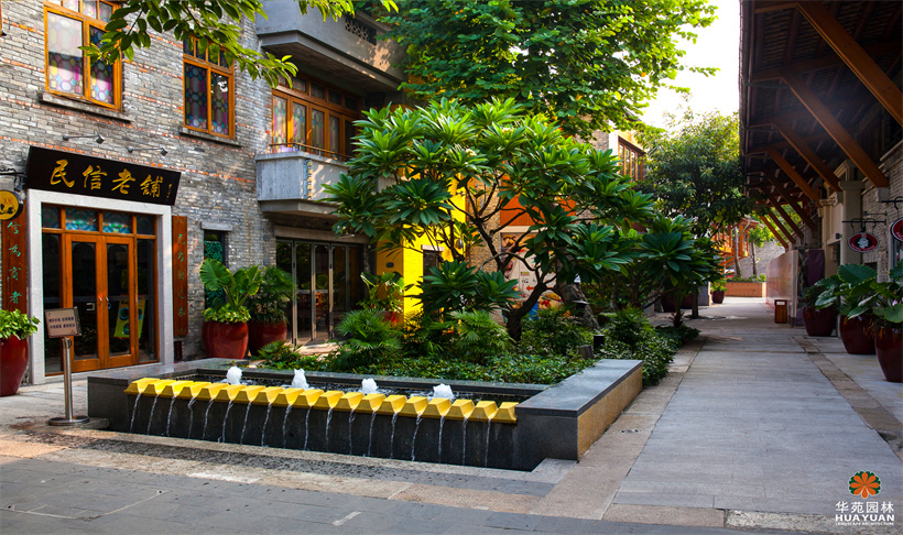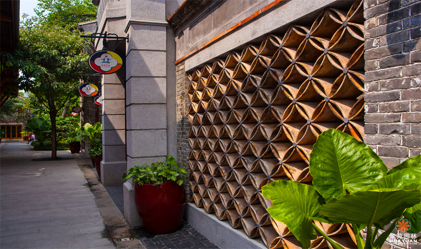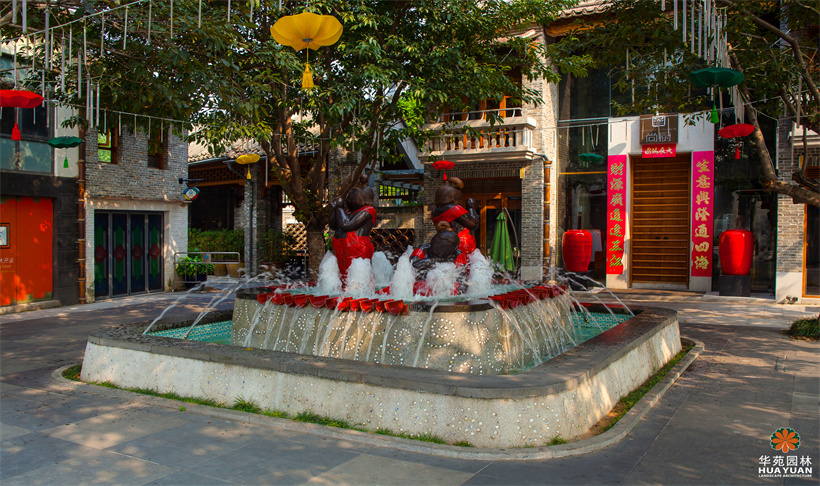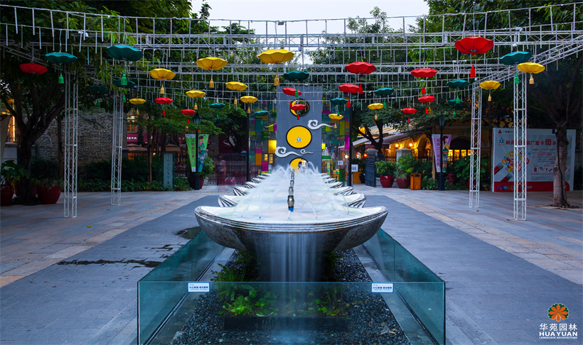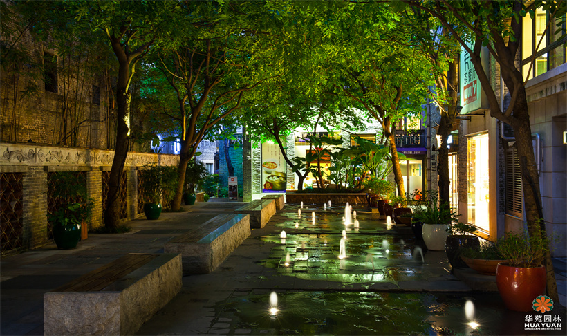 榮獲2014年度中國風(fēng)景園林學(xué)會“園林優(yōu)秀工程金獎” 集文化、藝術(shù)、旅游、商業(yè)、休閑于一體的佛山新地標(biāo)。在瀝瀝青石板道上,復(fù)古噴泉、陶瓷雕塑、嶺南盆栽、原生古樹,一色一香皆醇厚,瓦拼景墻、花紋仿古水洗石鋪地,時如工筆,時若潑墨,步步勾勒綿延畫卷;古材新用,融鑄嶺南工法和現(xiàn)代美學(xué)的雙重追求,重?zé)ǔ鎏耢o典雅的南國氤氳。